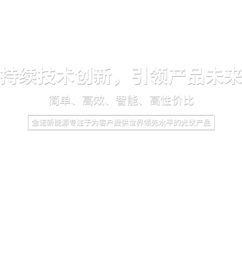 金諾新能源專注于為客戶提供世界領先水平的光伏產(chǎn)品,大力實施科技創(chuàng)新。我們秉持“品質為先,服務全球”的理念,為客戶創(chuàng)造更高價值,并與您分享世界綠色能源在陽光下的成長喜悅!
